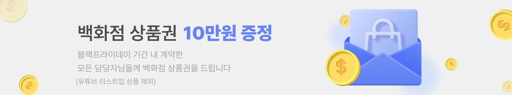 계약 시 담당자님께 10만원 상당의 백화점 상품권을 선물로 드립니다.